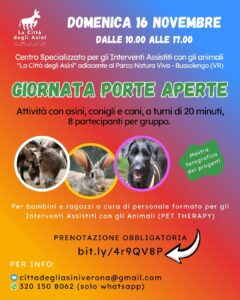 Gli animali coinvolti NON SONO SOLO ASINI, ma anche CANI, GATTI, CONIGLI E CAVALLI, secondo le LINEE GUIDA NAZIONALI IAA e le Normative Nazionali e Regionali di riferimento.